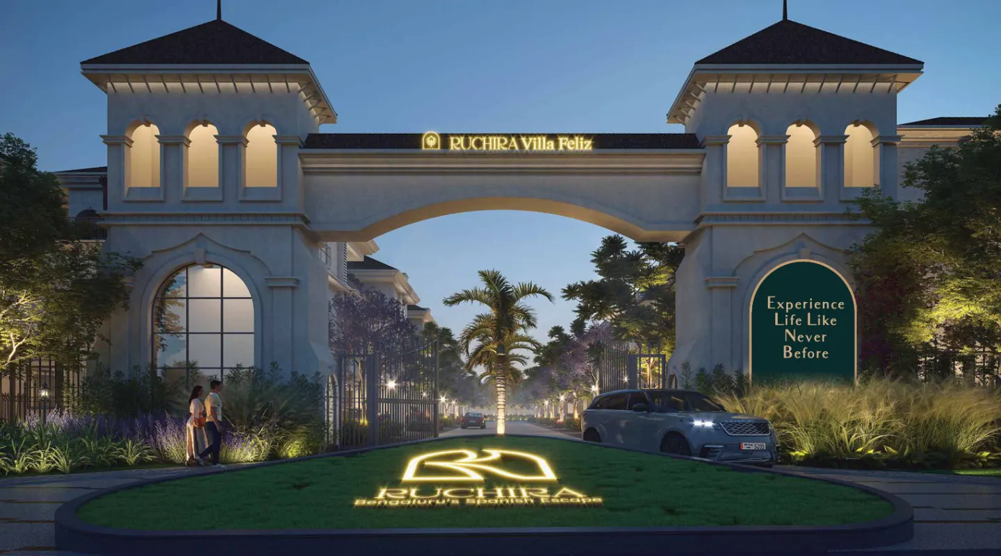 Ruchira Villa Feliz is a premium, RERA-approved residential project by Ruchira Projects located off Sarjapur Road in Bengaluru. This luxury gated community is spread across approximately 10 acres, featuring around 115 exclusive 4 and 4.5 BHK villas (G+2 structure) with a distinctive Spanish architectural theme. The project offers spacious layouts and a host of modern amenities, with possession anticipated around late 2027.