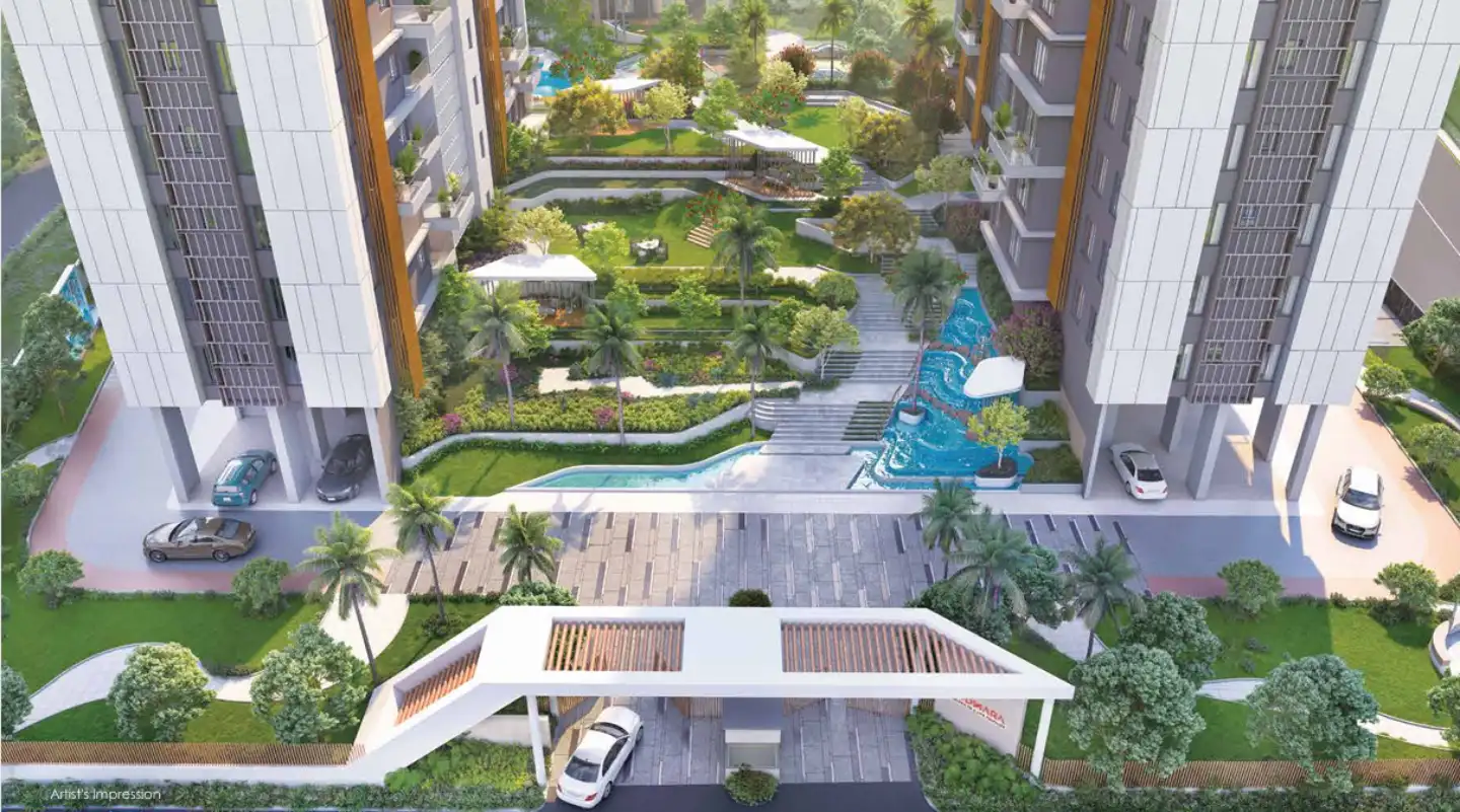SKDJ Nidhara is a premium housing development located in the Buroshibtala / New Alipore area of Kolkata, The project is planned over roughly 2.4–2.5 acres (≈ 2.39 acres) of land, Designed with attention to light, ventilation, and openness — many of the flats are “three‑sides‑open,” south‑facing, and come with generous floor‑to‑floor / floor‑to‑ceiling height for a bright, airy feel.