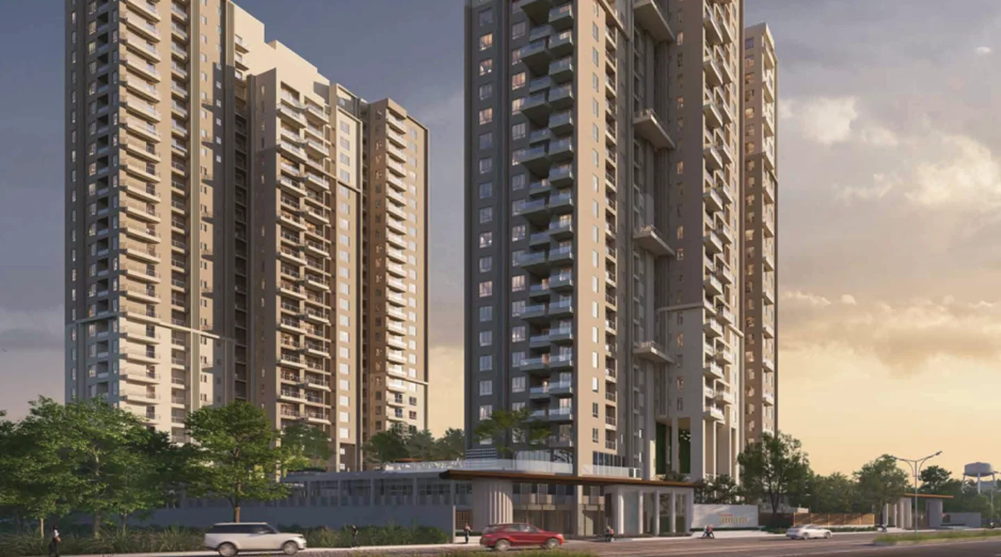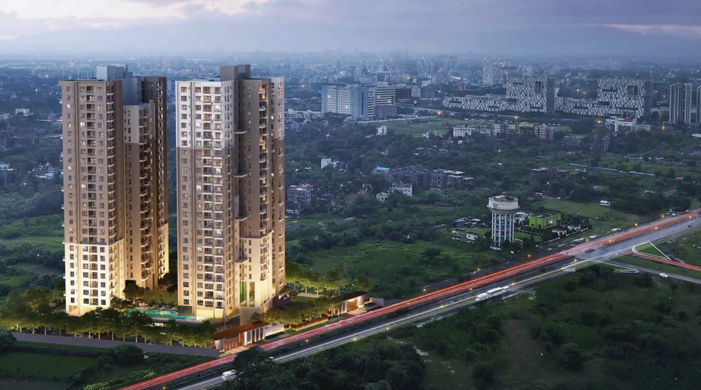 Scale & Living Experience: A landmark twin-tower residential development in Newtown Action Area II, featuring some of the tallest towers in the vicinity with 82% open-to-sky planning and expansive green landscapes.